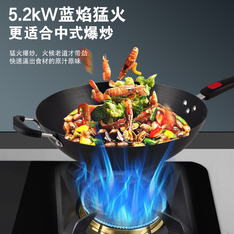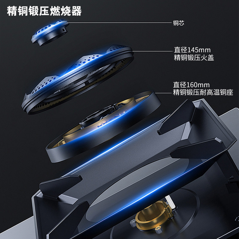 万喜燃气灶JZT-818B2家用厨房大火力双灶大面板台式嵌入式纯铜
