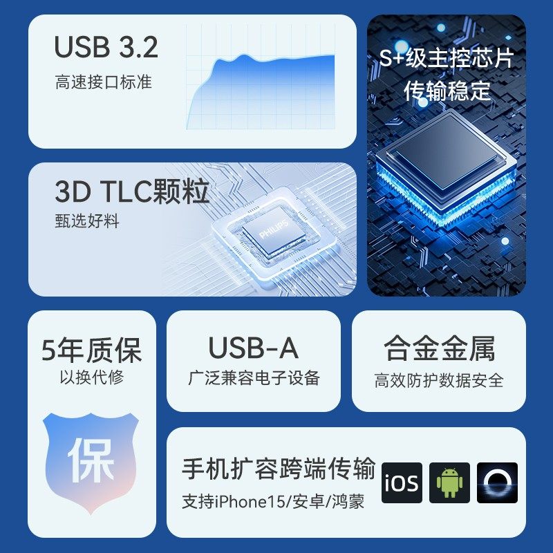 飞利浦u盘高速大容量128g电脑办公优盘正品官方旗舰店USB3.2定制