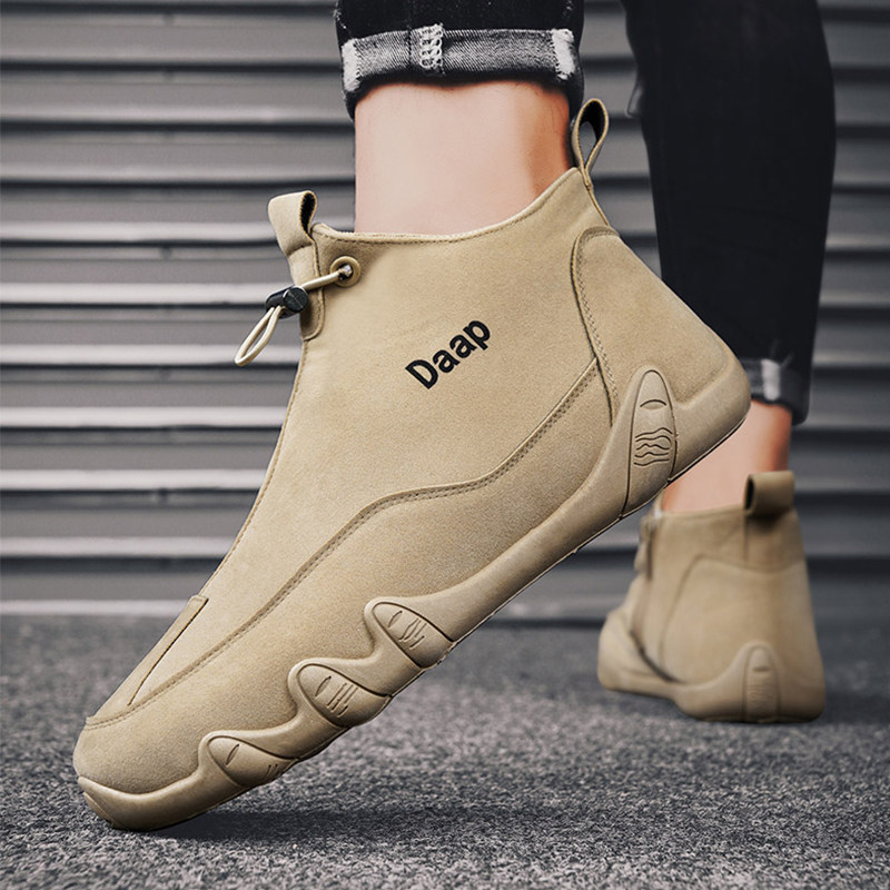 秋季马丁靴男鞋防水防滑一脚蹬运动工装工地工作软底劳保潮鞋耐磨
