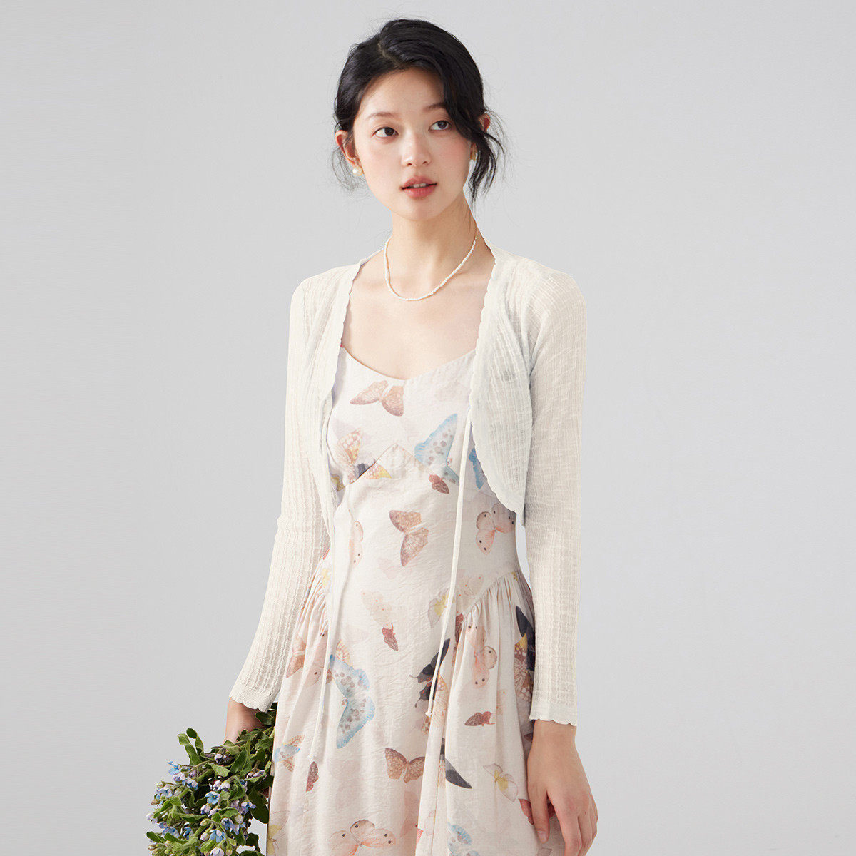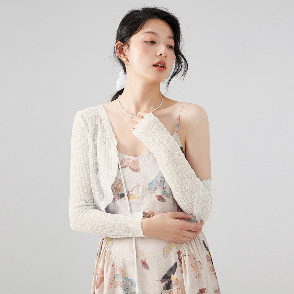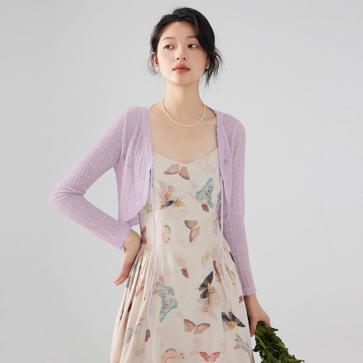 one more外搭冰丝针织开衫2025夏季新款长袖罩衫百搭系带小衫女