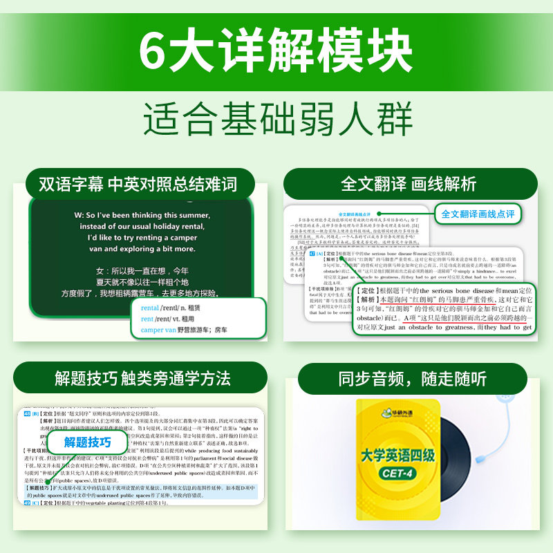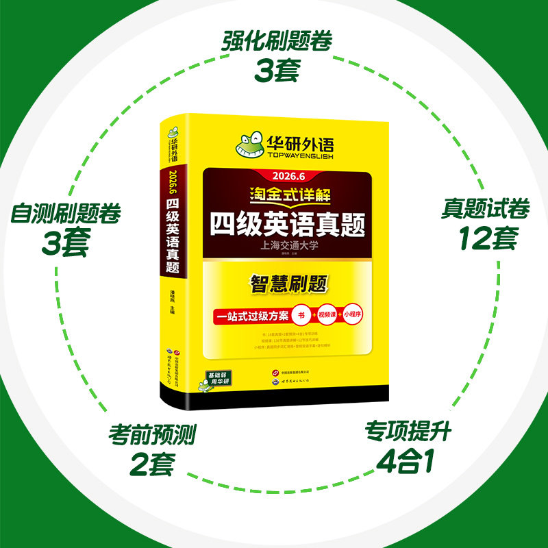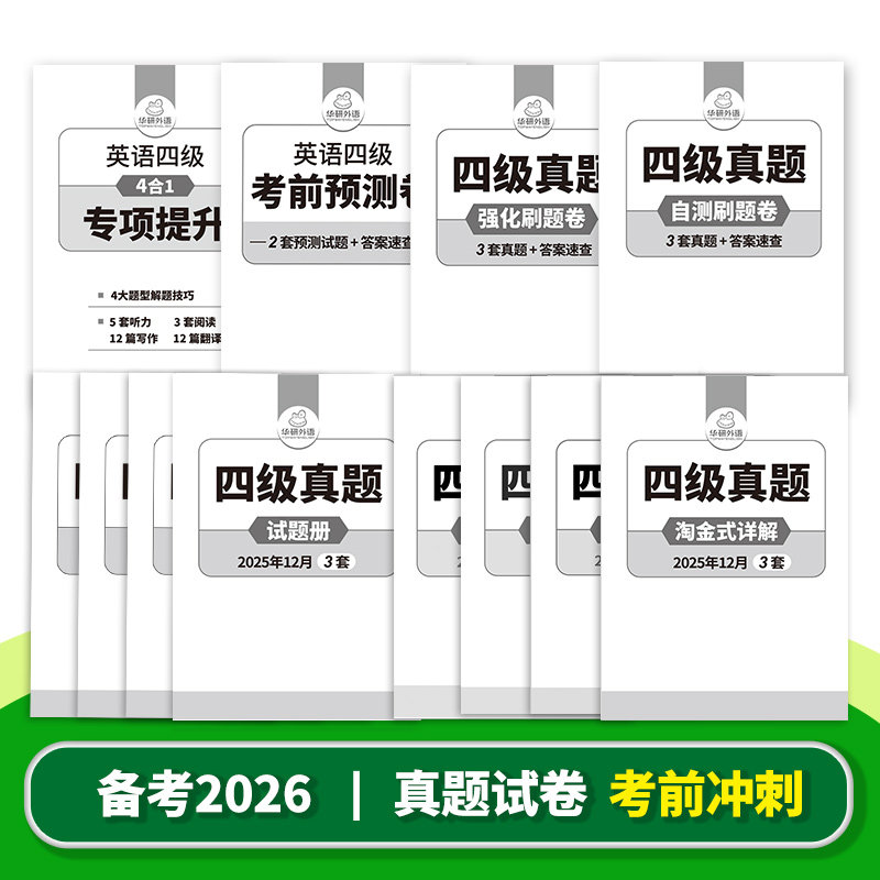 华研外语淘金式详解四级英语真题备考2026年6月大学英语四六级考试历年真题试卷词汇单词默写本阅读听力翻译写作文专项训练资料书