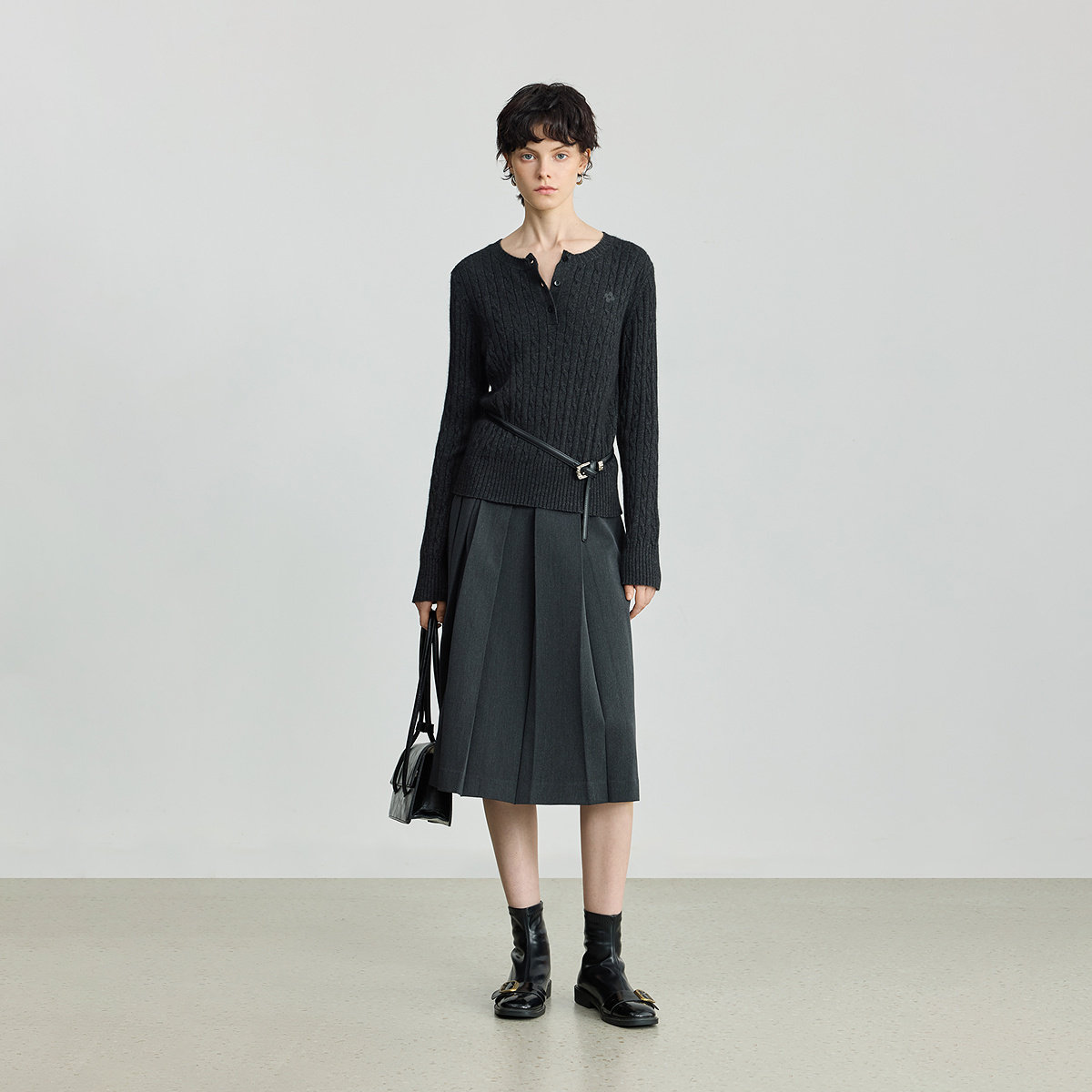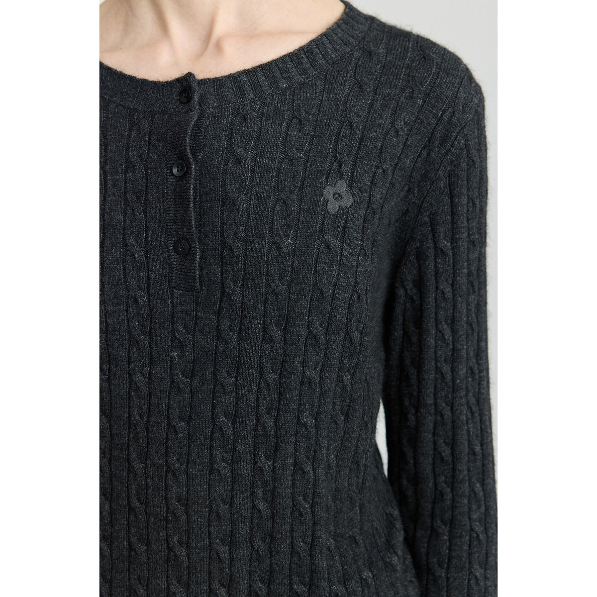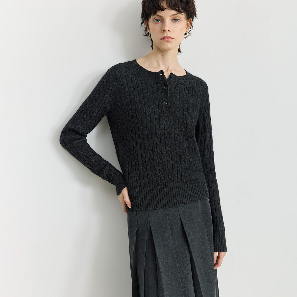 LILY2025冬新款女装羊毛兔毛混纺老钱风亨利领气质通勤针织衫毛衣