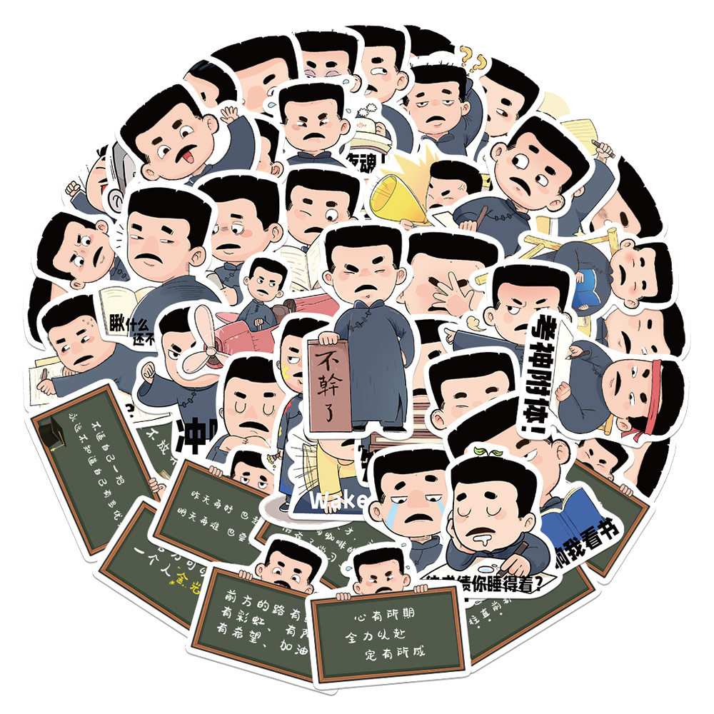 50张原创手绘觉醒年代迅哥劝学表情包贴纸拉杆箱可爱装饰防水贴画