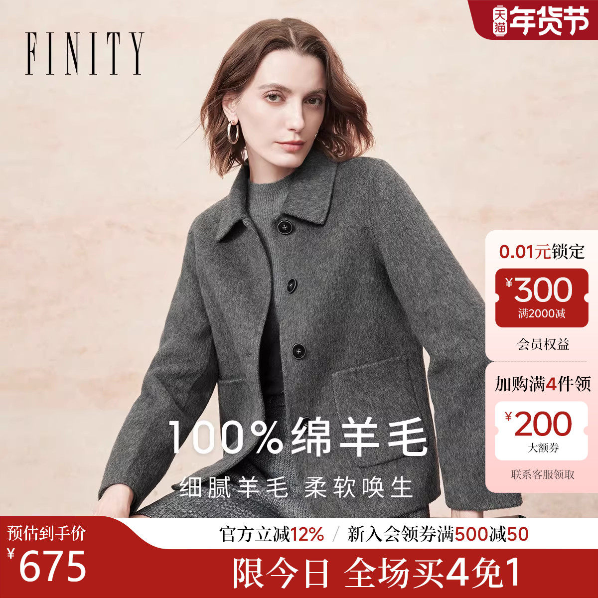 【纯羊毛】FINITY菲妮迪毛呢外套2025年冬季新款翻领双面呢大衣女