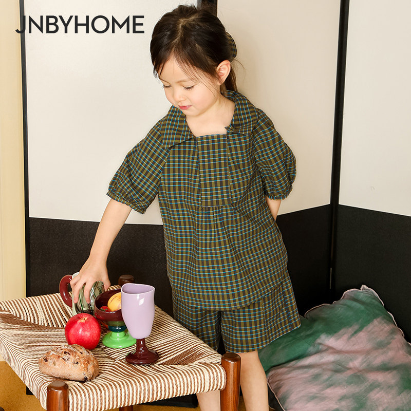 JNBYHOME江南布衣儿童款泡泡纱家居服棉质睡衣连衣裙泡泡袖亲子女
