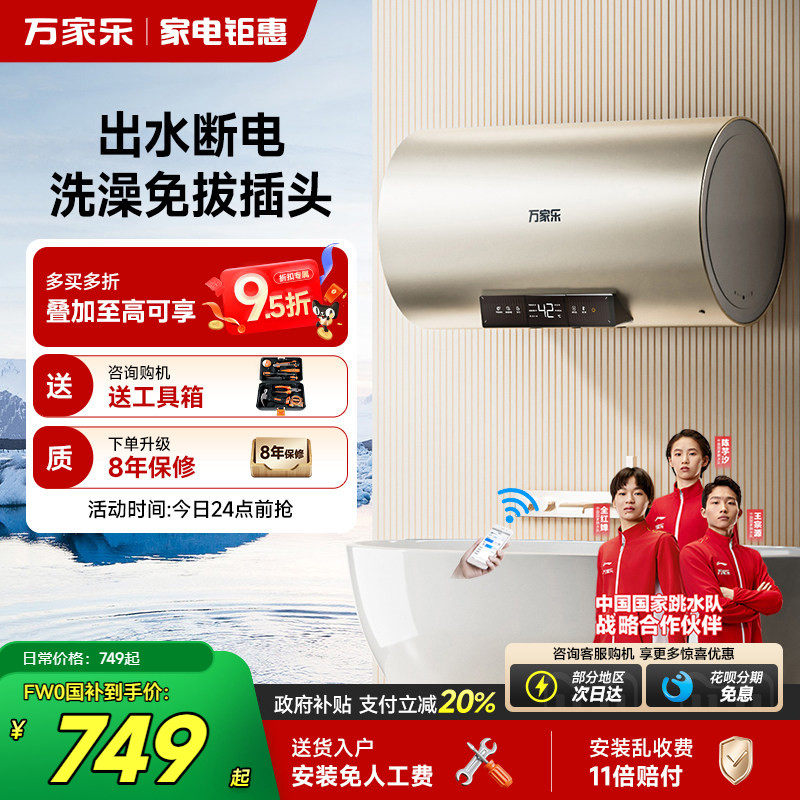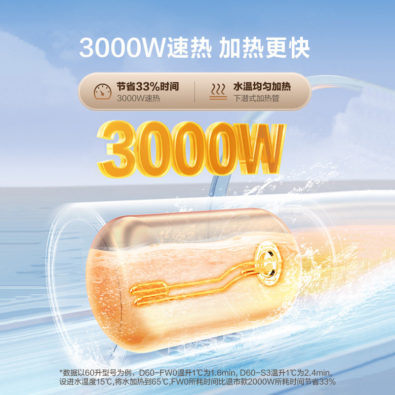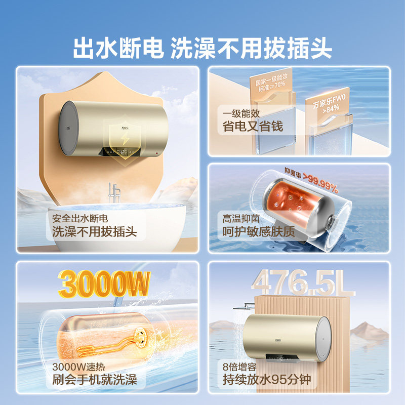 万家乐电热水器家用卫生间储水式洗澡60升FW0一级能效节能速热80l