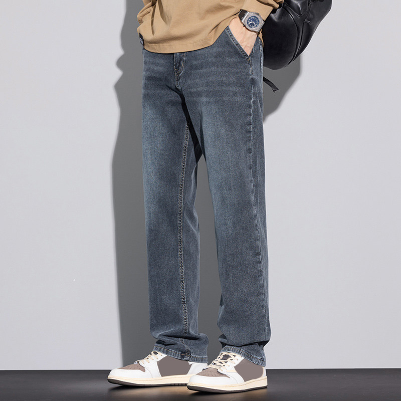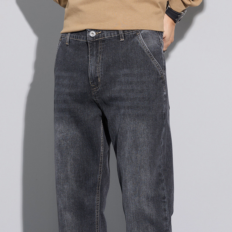 罗蒙冬季牛仔裤男士修身直筒宽松男裤2025新款休闲加绒长裤子男款