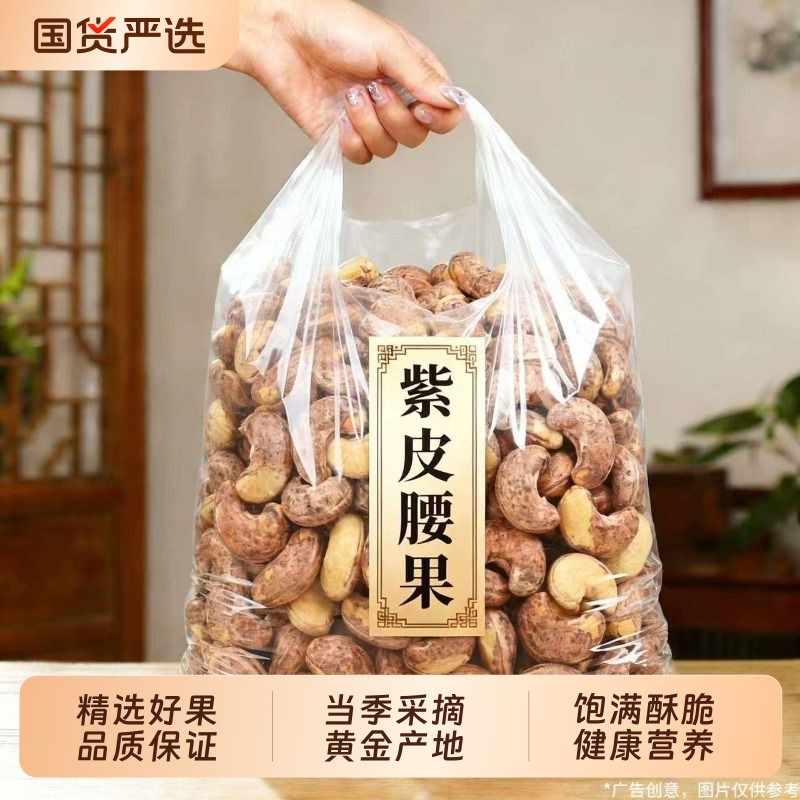 带皮大腰果仁原味紫衣坚果特产干果零食休闲食品新年礼批发囤货