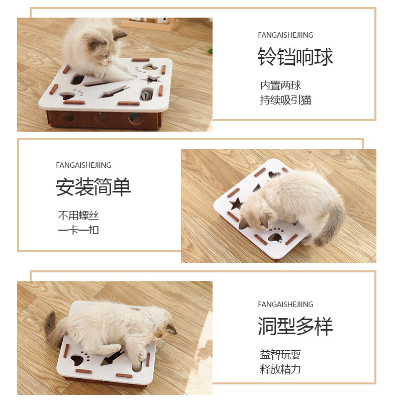 猫玩具掏掏乐迷宫盒子益智自嗨解闷逗猫神器铃铛球小猫幼猫毛毡盒