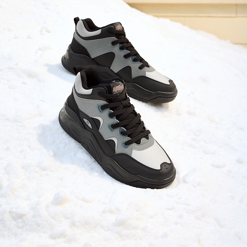 361型燃4运动鞋男鞋冬季2025新款复古加绒板鞋保暖皮面高帮休闲鞋