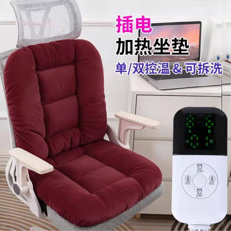 插电加热发热坐垫靠背一体座椅垫子办公室久坐护腰靠垫办公椅冬季