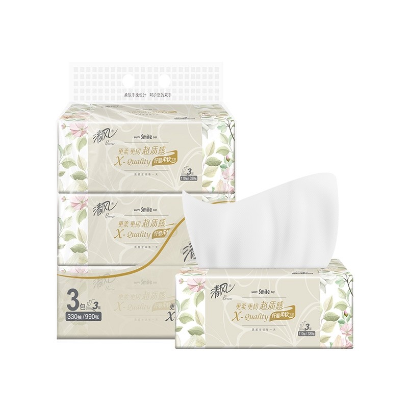 抽纸清风超质感3层110抽面巾纸餐巾纸家用实惠装卫生纸抽批抽取式