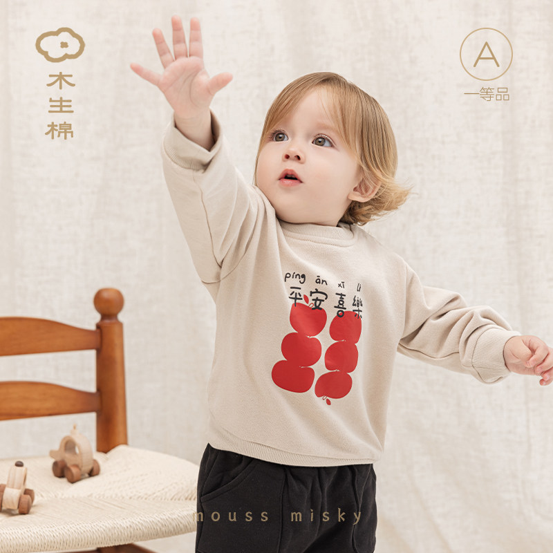木生棉男女宝宝纯棉抓绒卫衣春秋季婴儿衣服外出可爱保暖上衣春装