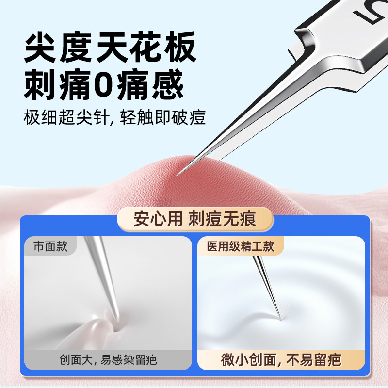 超尖粉刺针黑头夹细胞夹套装5号镊子刮闭口挑挤痘祛痘针工具便携