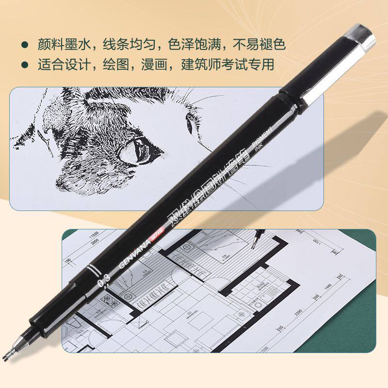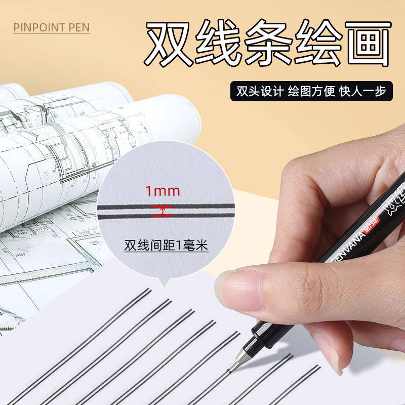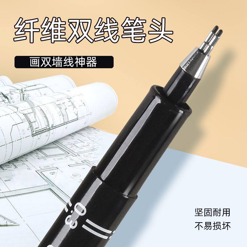 金万年双线笔针管笔0.1建筑师考试专用双头针管笔0.3mm绘图工具墙线笔0.5手绘制图一注二注作图设计专用针笔