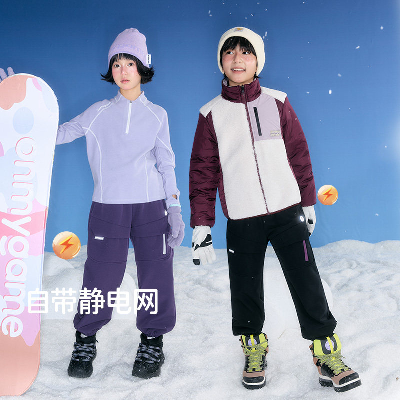 onmygame【加绒彩壳裤】儿童长裤户外保暖男女童工装裤子25秋冬新