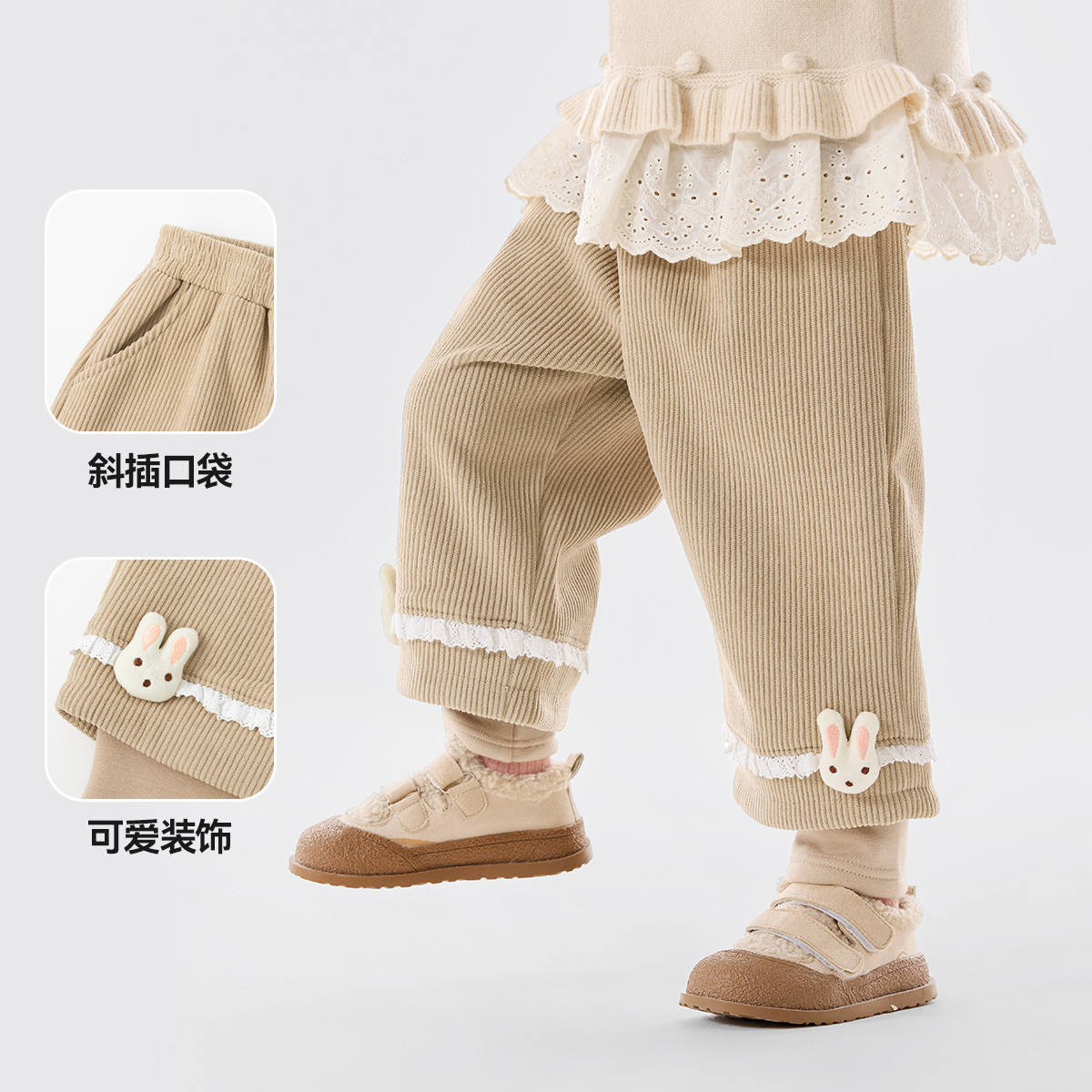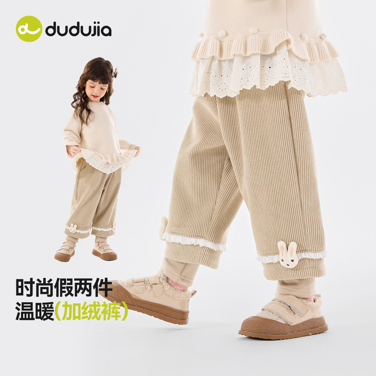 嘟嘟家女童裤子秋冬加绒女宝长裤冬季儿童假两件休闲裤卡通冬装潮