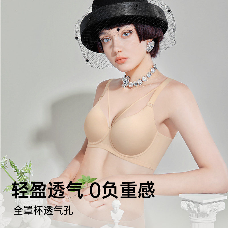 怡倩【舒适度】无痕内衣女大胸显小聚拢收副乳防下垂光面薄款文胸