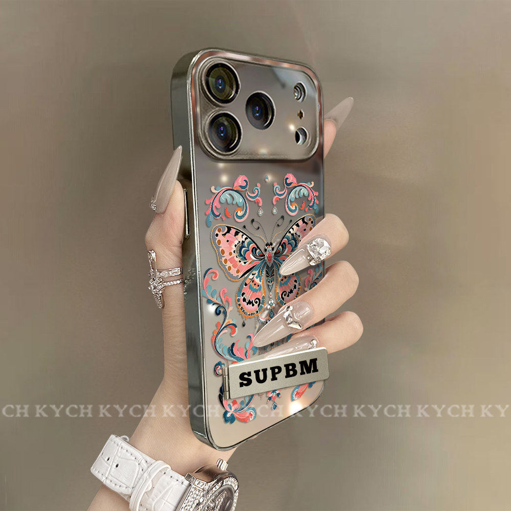 补妆镜面高级蝴蝶流苏苹果新款手机壳