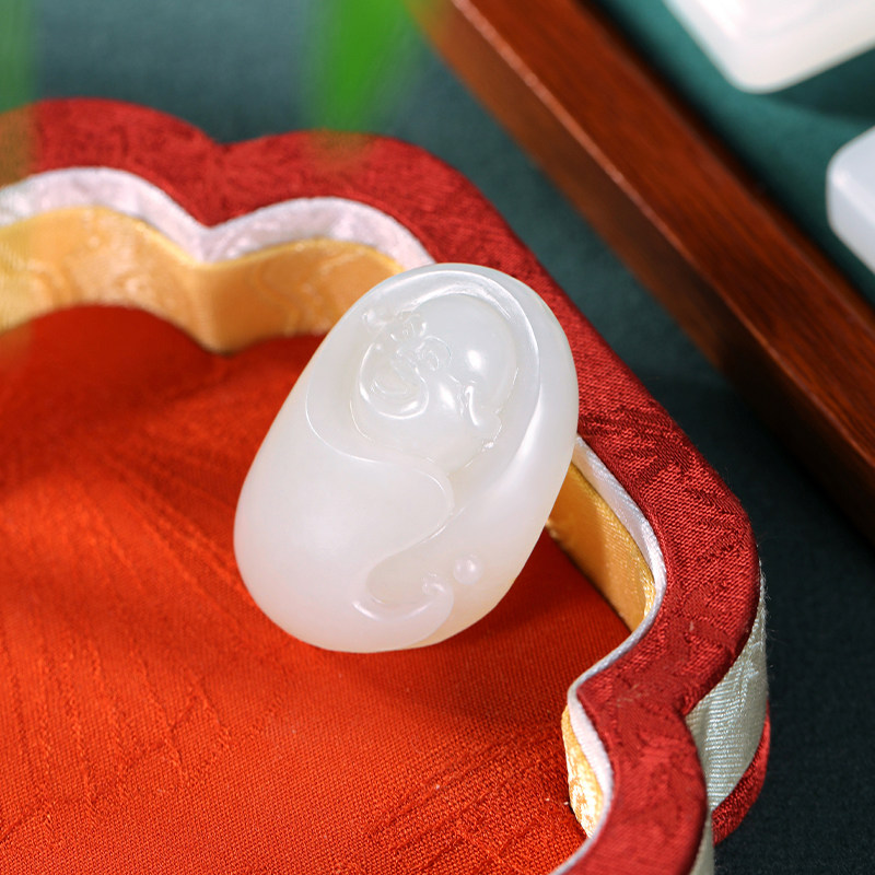 和合玉器和田玉白玉子佛挂件和田籽料笑佛吊坠子大师玉石子料作品