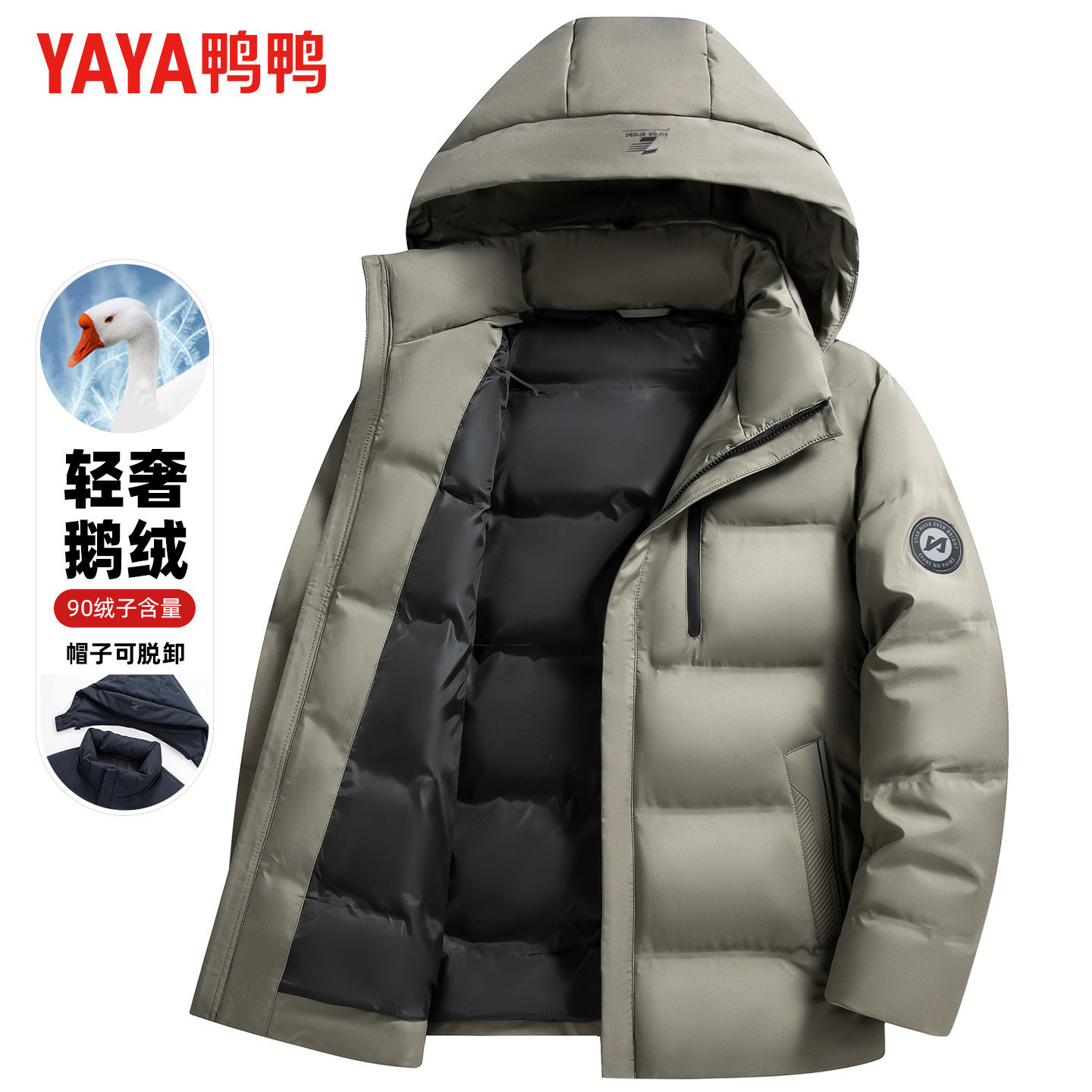 【90鹅绒】鸭鸭男士冬季羽绒服可脱连帽加厚保暖商务爸爸装外套