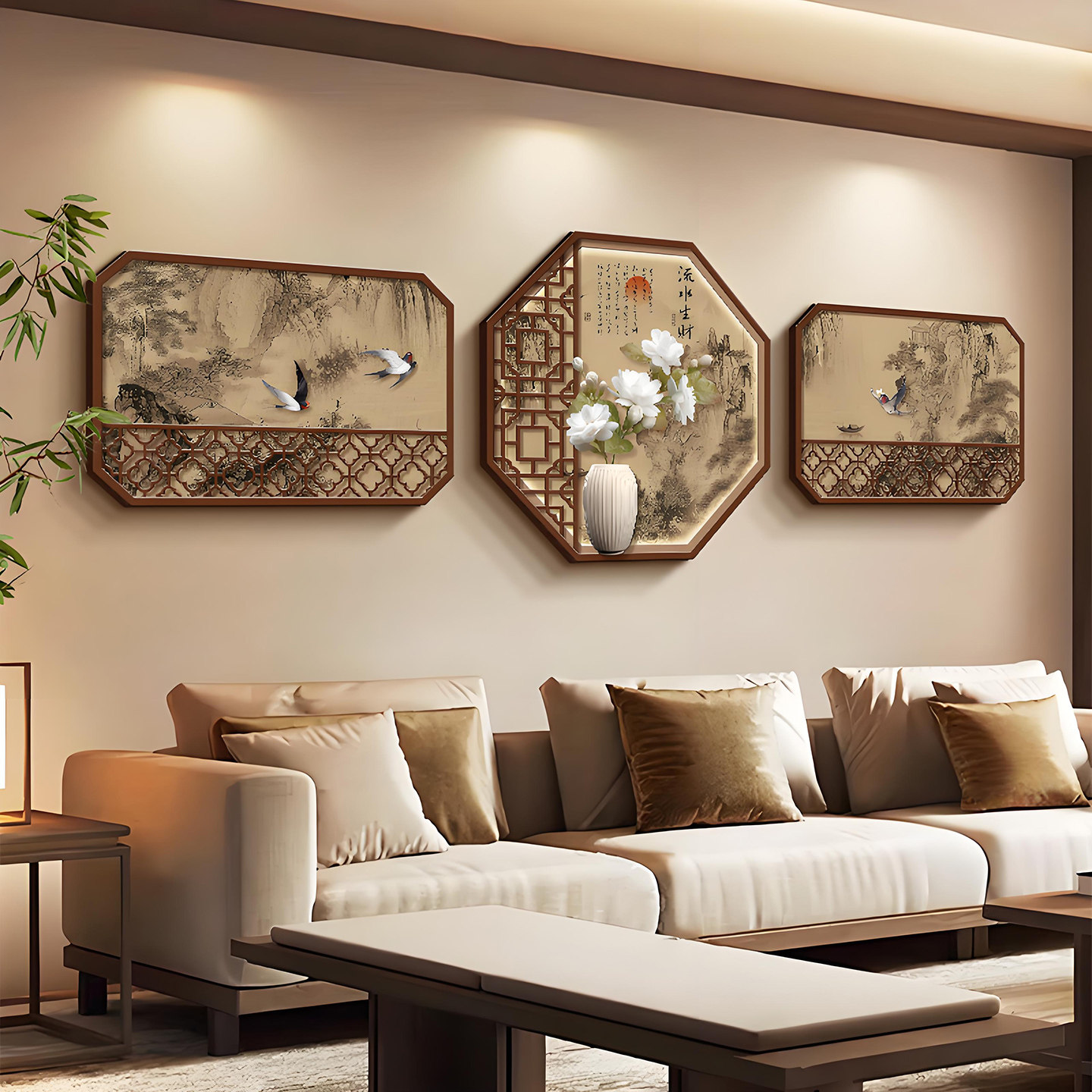 宋式美学客厅装饰画2025新款电视沙发背景墙挂画中古风高级感壁饰