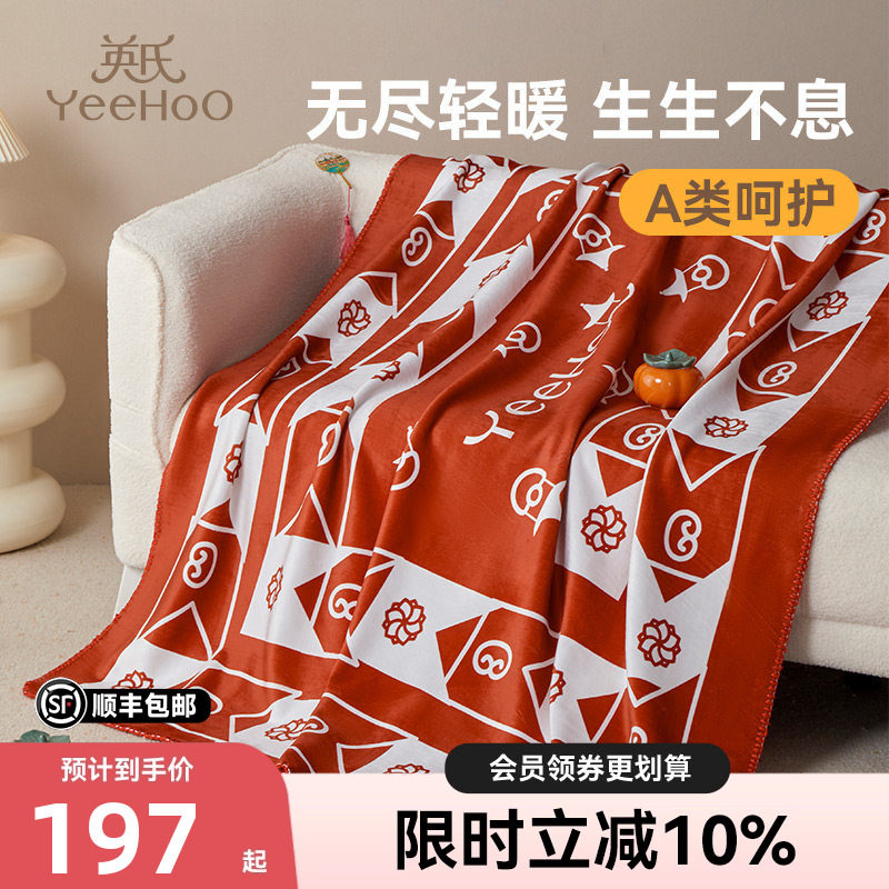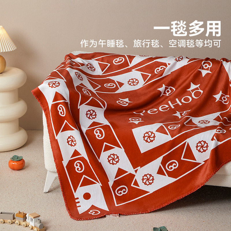 英氏福气莲莲绒毯午睡盖毯加厚毛毯新年礼盒办公室春季毯子沙发用