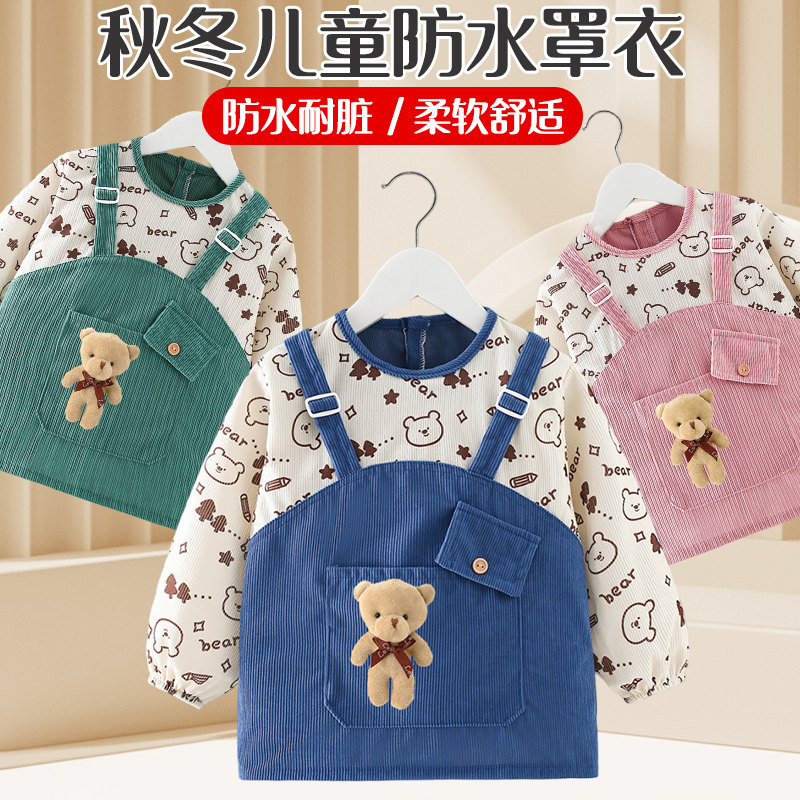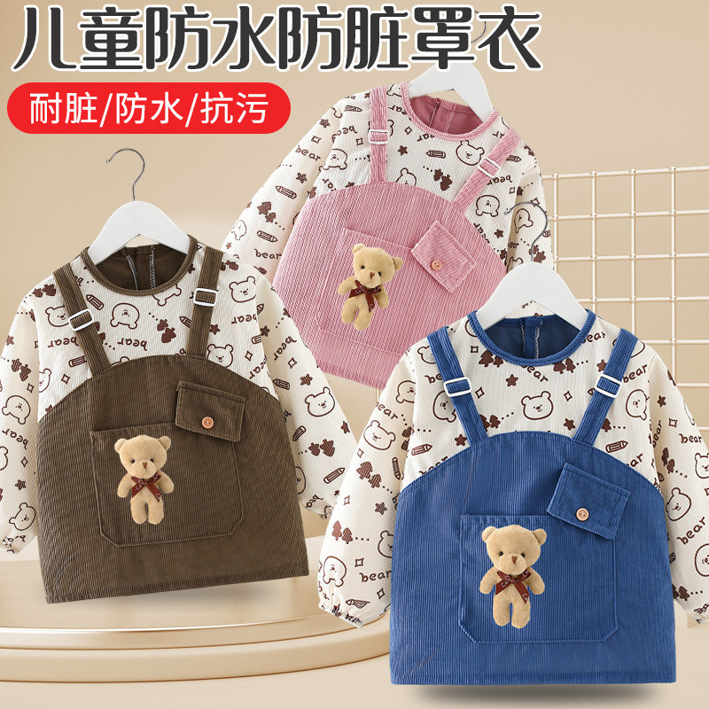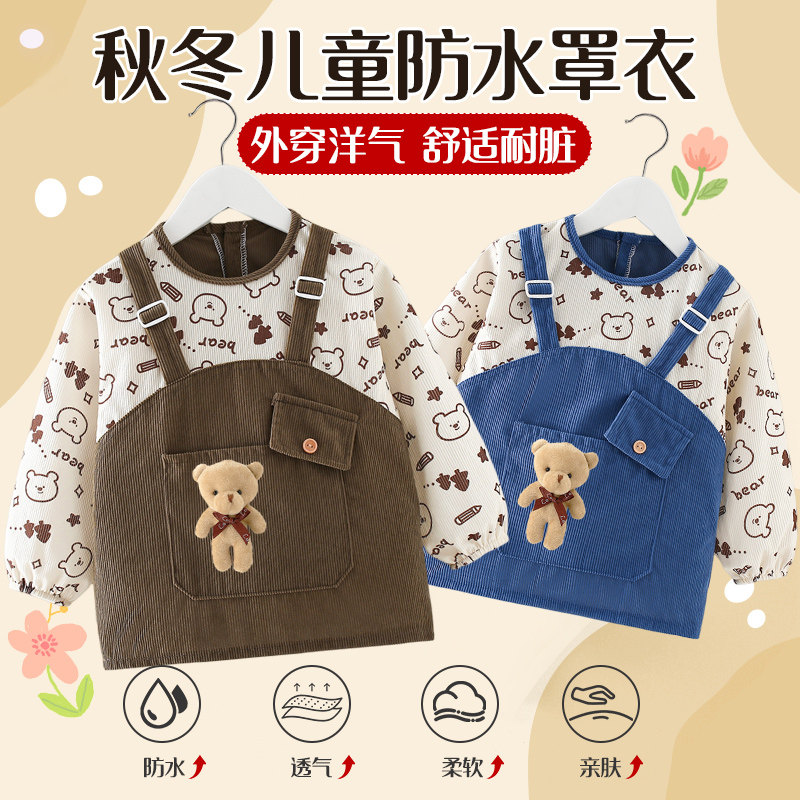 罩衣儿童宝宝秋冬季洋气外穿防水防脏吃饭围兜男女辅食围裙反穿衣