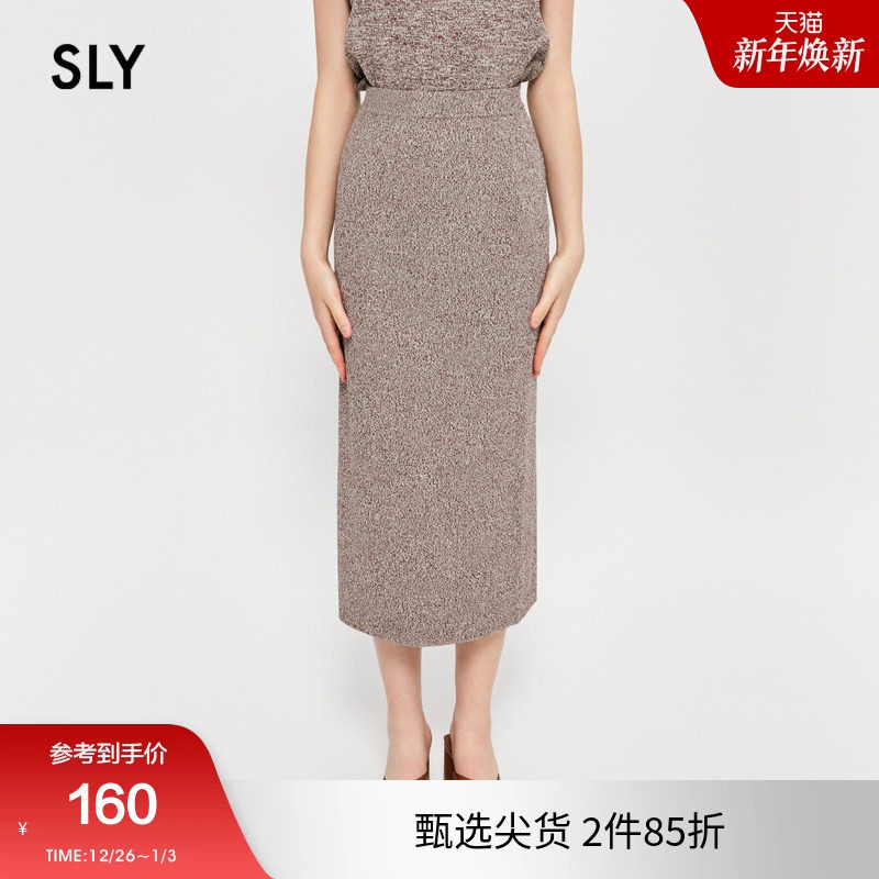 SLY 春季新品气质通勤风开叉针织包臀裙半身裙030GSL71-5160