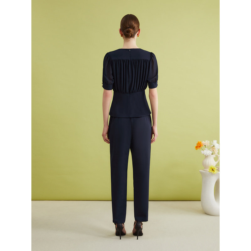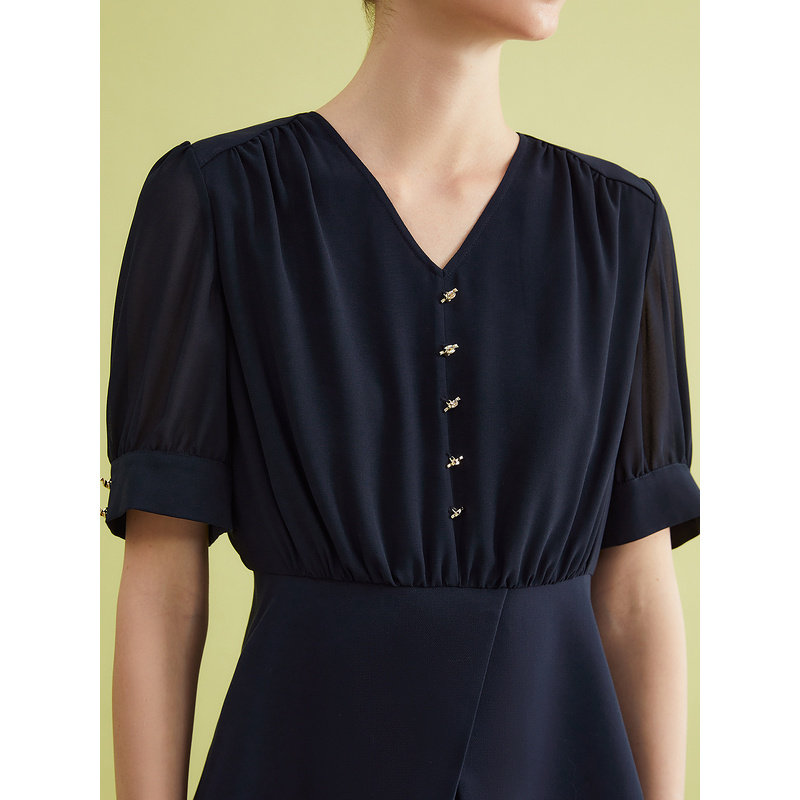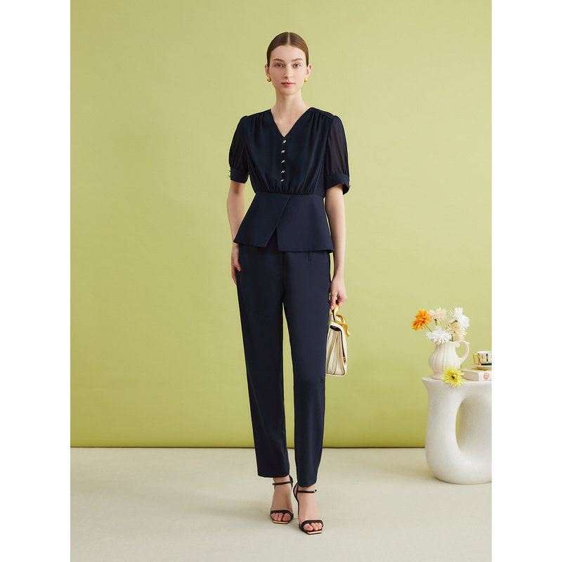 YINER音儿专选夏季法式细纹微肌理优雅雪纺上衣亲肤衬衫
