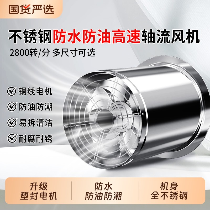防水防油圆筒排气扇不锈钢单边嵌入式高速抽风机厨房油烟机换气扇
