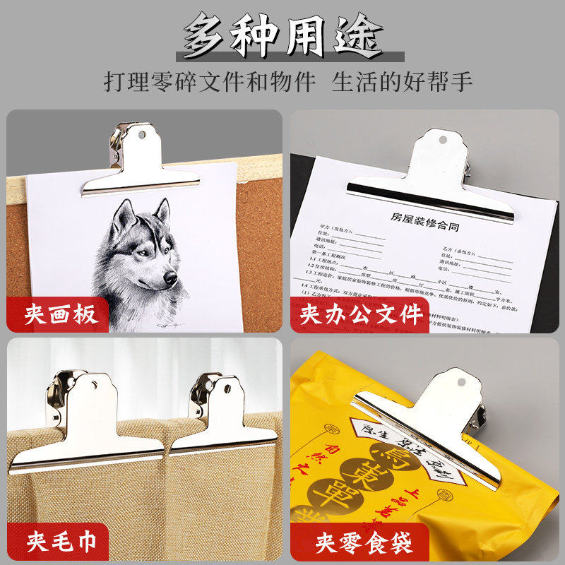 夹子文具特大号办公用文件多功能金属蝴蝶夹万用整理票据夹固定器强力不锈钢铁夹子素描画板书夹子工具山形夹
