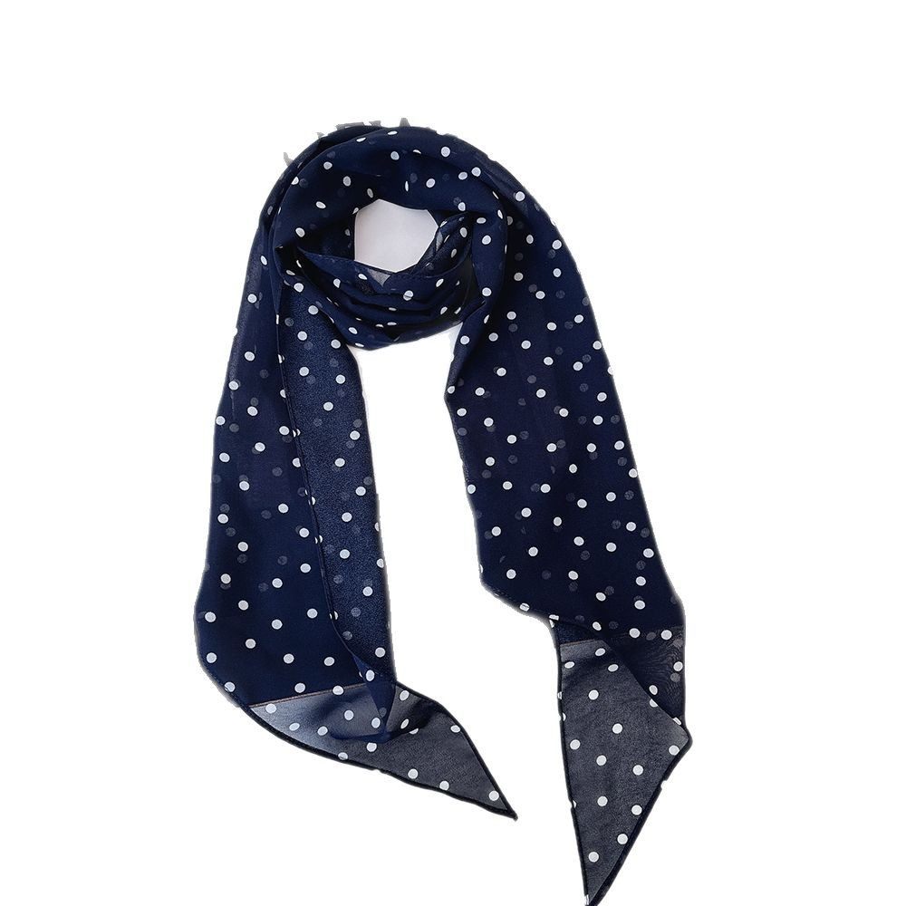 法式棕色波点长条小丝巾女2025年新款配饰颈饰发带飘带百搭圆点