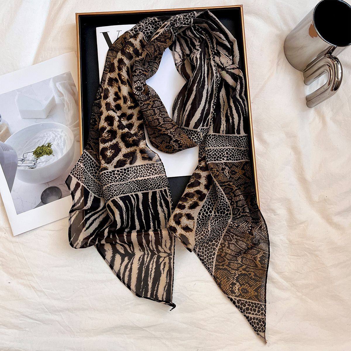 2024新款四季百搭长条小丝巾女薄款洋气高级黑白围脖领巾韩式围巾