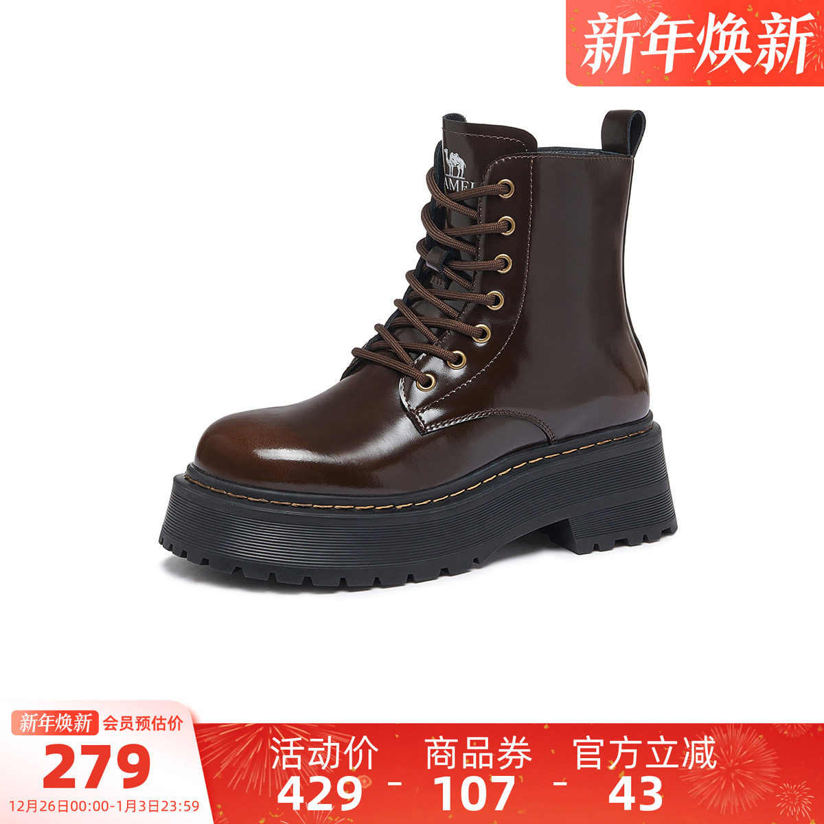 天美意复古英伦风厚底加绒马丁靴女鞋子冬新款休闲短靴皮靴时装靴
