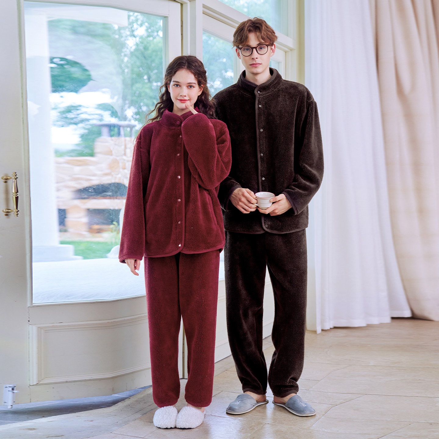 美标情侣珊瑚绒睡衣套装女秋冬加厚保暖舒棉绒可外穿休闲家居服男