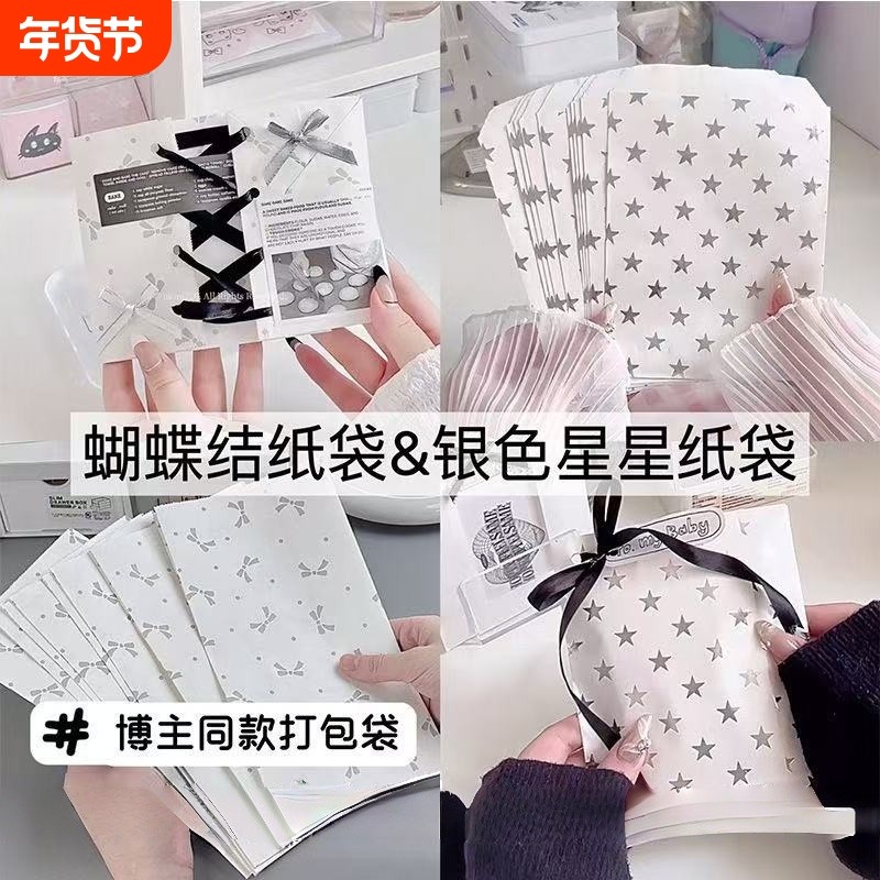 ins蝴蝶结封口袋出卡打包礼品袋贴纸包装袋自封袋纸袋星星银色