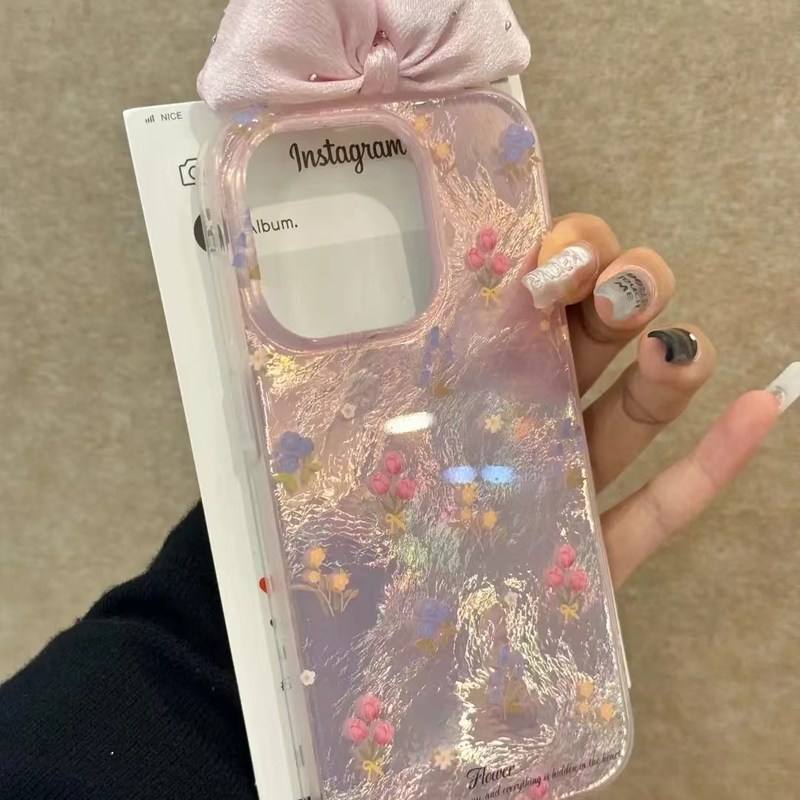 ins小清新粉色碎花蝴蝶结苹果手机壳