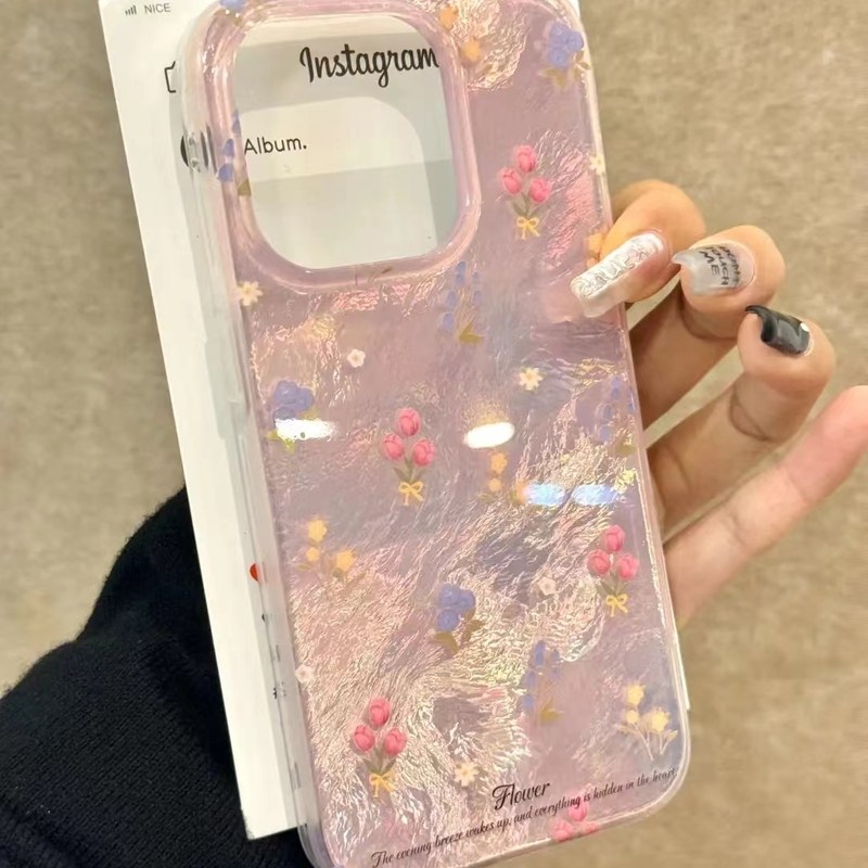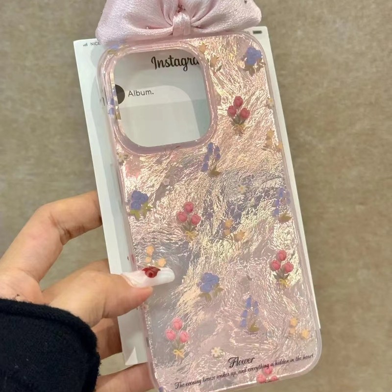 ins小清新粉色碎花蝴蝶结适用iPhone16手机壳苹果16promax新款15/15pro全包13/14网红14pm女12时尚14pro防摔