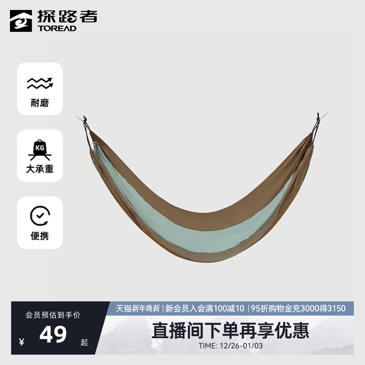 探路者露营吊床户外野营耐磨抗撕裂大承重尼龙材质超轻便携秋千