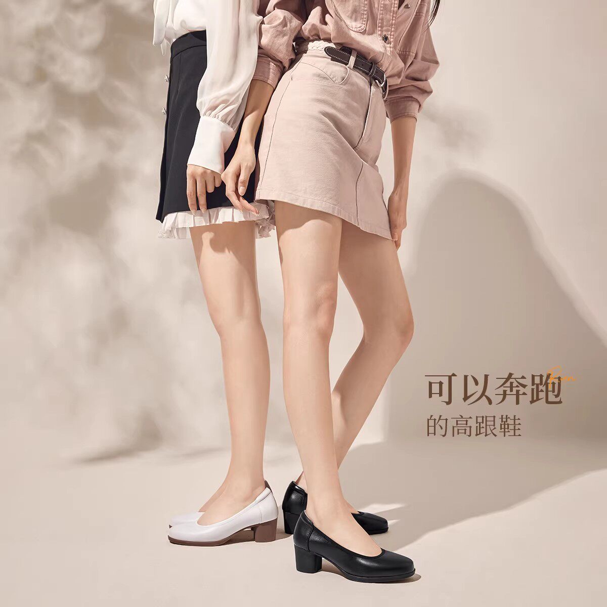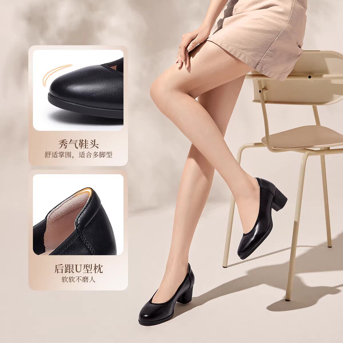【明星同款|静音系列】千百度练习曲裸色高跟鞋真皮通勤法式单鞋