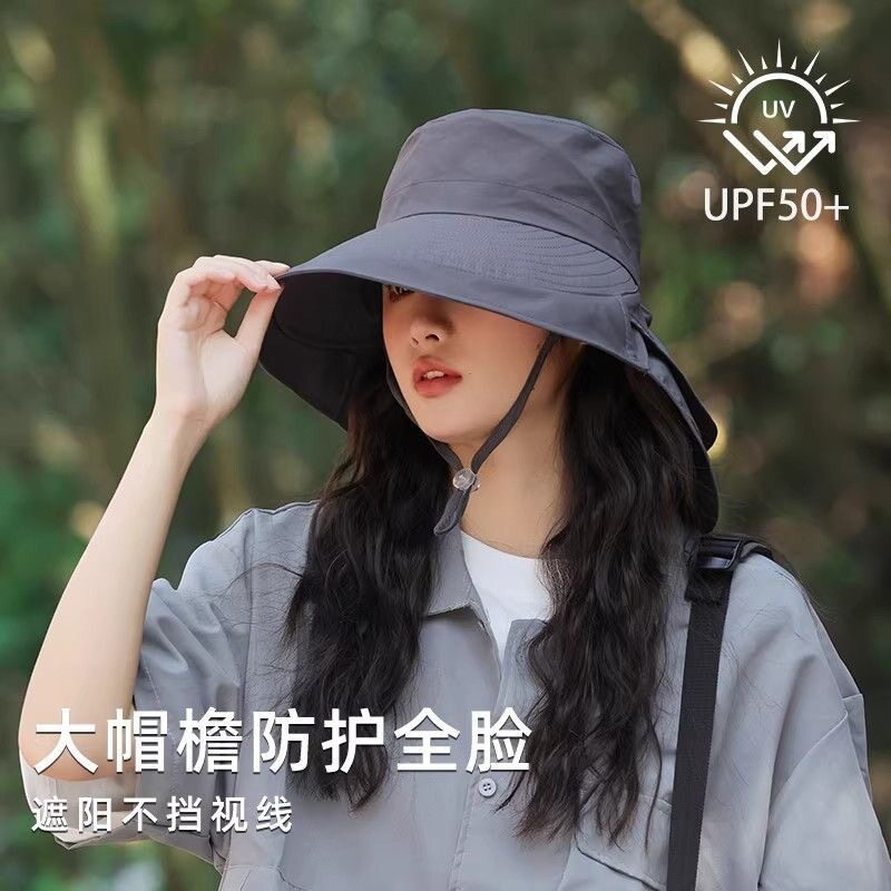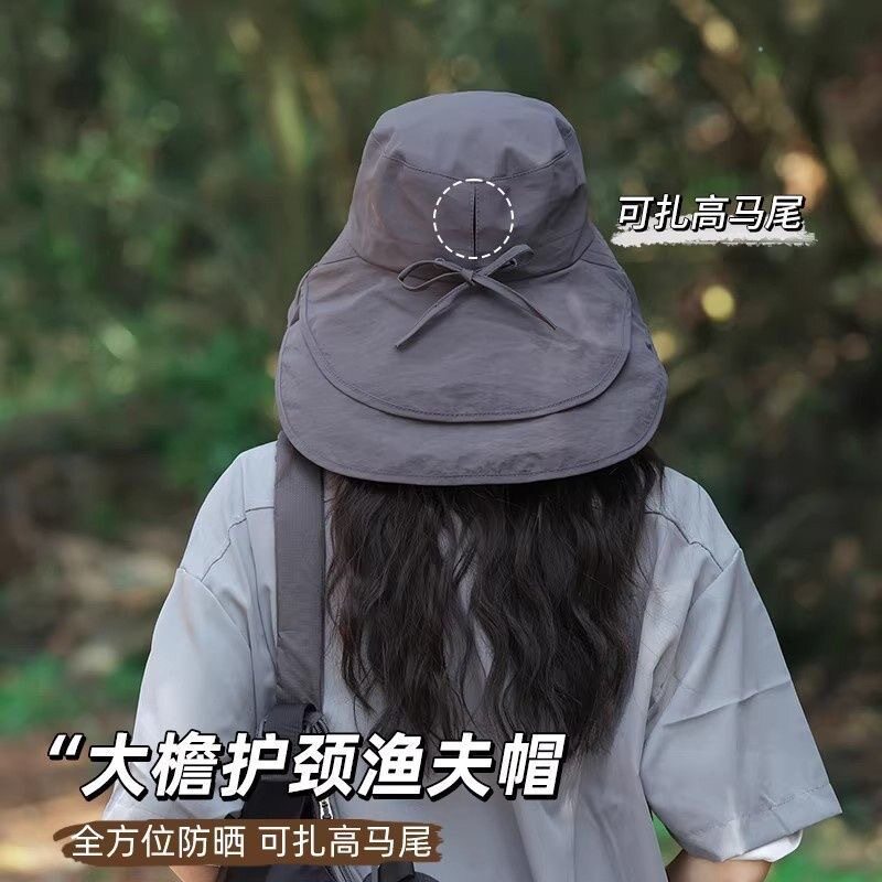 防晒帽子女夏季遮阳帽户外太阳帽透气折叠登山渔夫帽紫色速干全脸