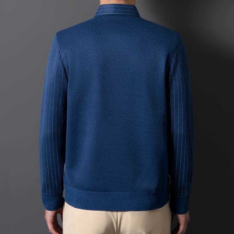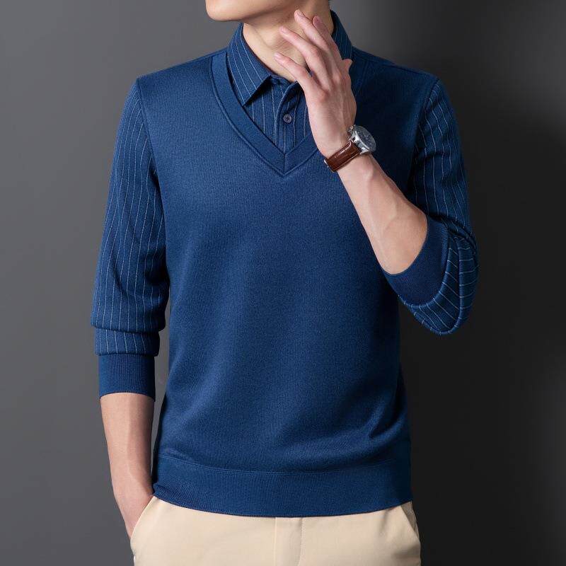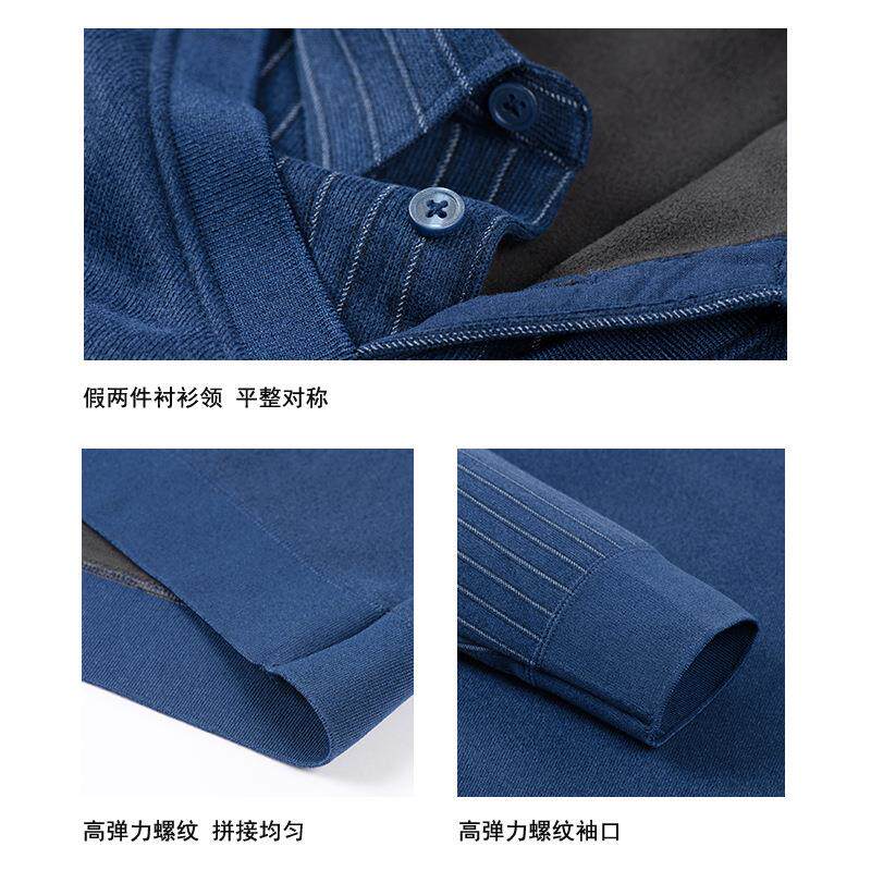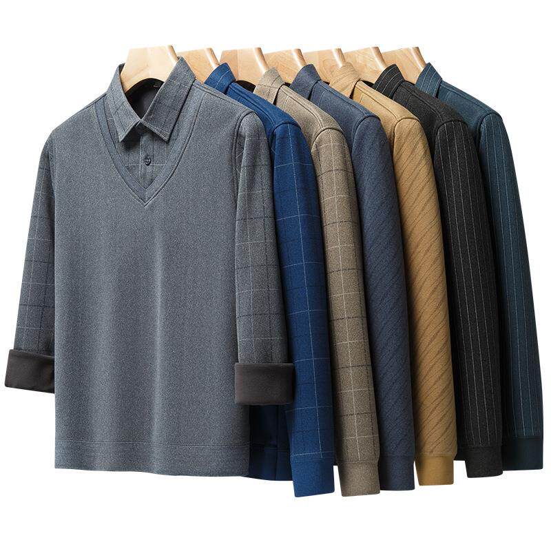 保暖衬衫男长袖加绒加厚中老年男士假两件针织衬衣商务爸爸装内搭