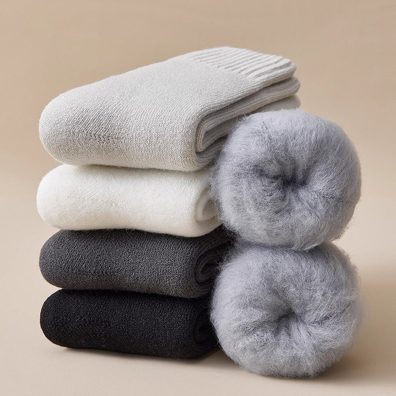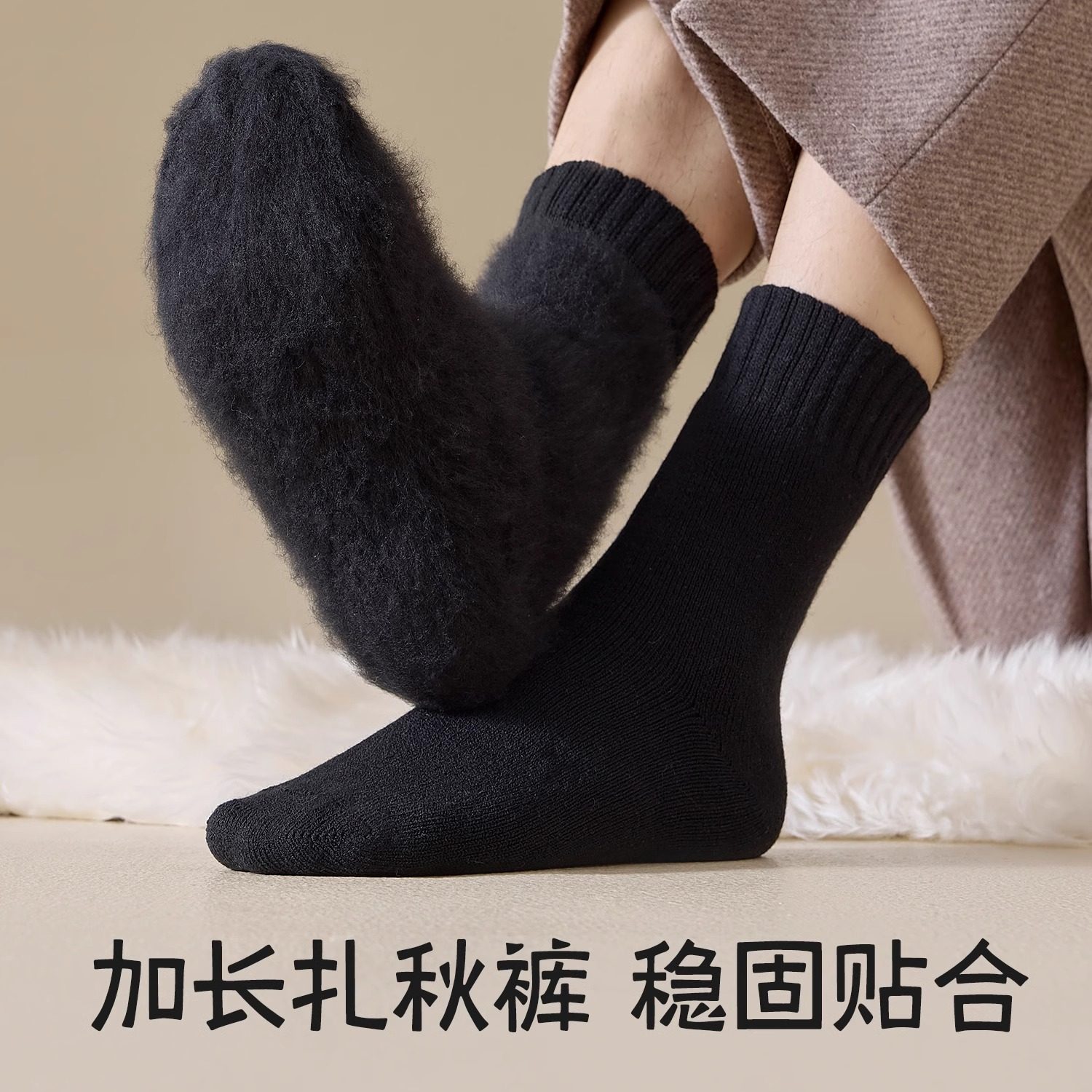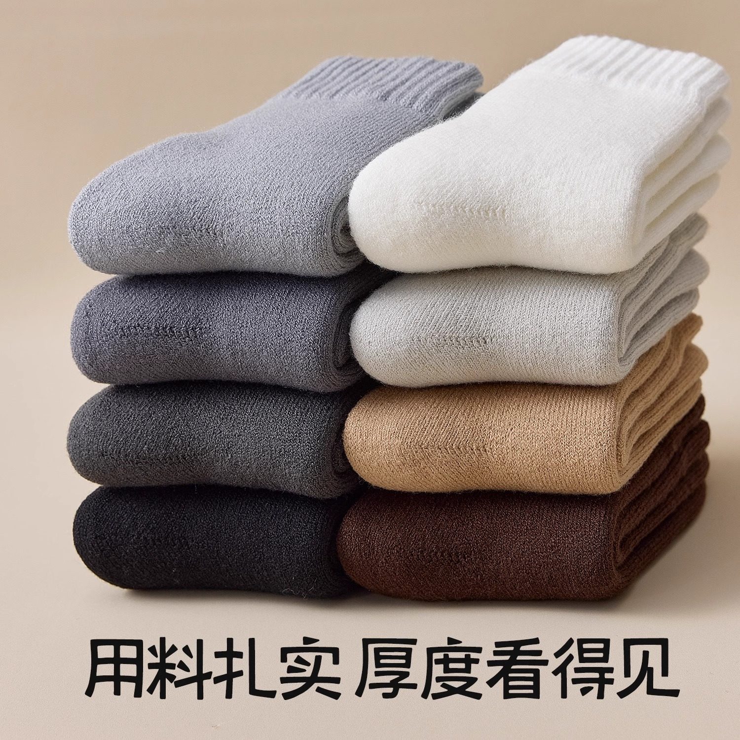 诸暨袜子棉袜男士袜加厚中筒袜加绒保暖羊毛地板袜秋冬季白色黑色