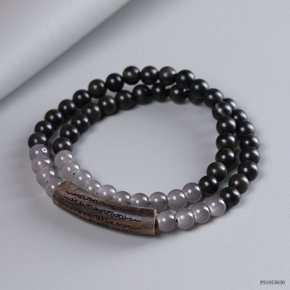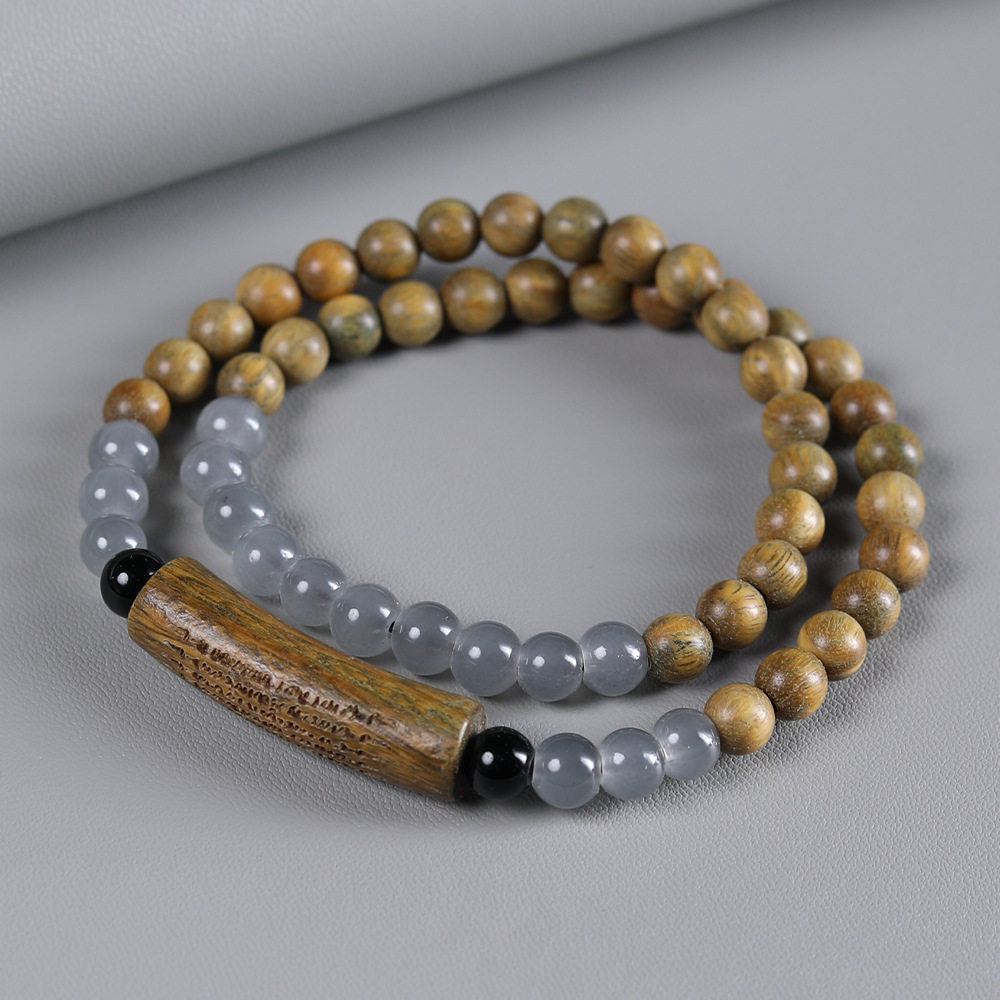 复古天然绿檀木五条经文设计款双圈手链佛珠手串男女情侣文玩念珠