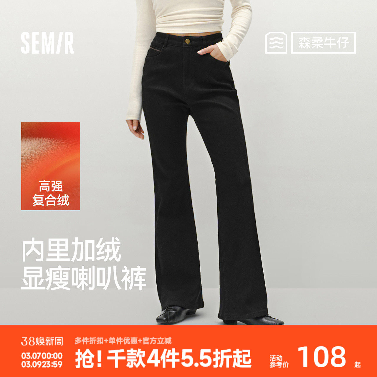 森柔|森马牛仔裤女冬季加绒保暖宽松喇叭裤弹力长裤2025新款港风