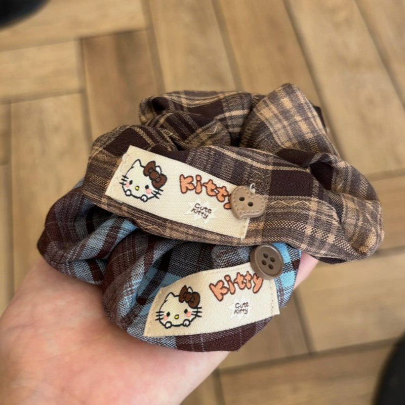韩复古小熊布标发绳学院风格纹布艺方巾大肠圈头绳扎学生马尾发饰