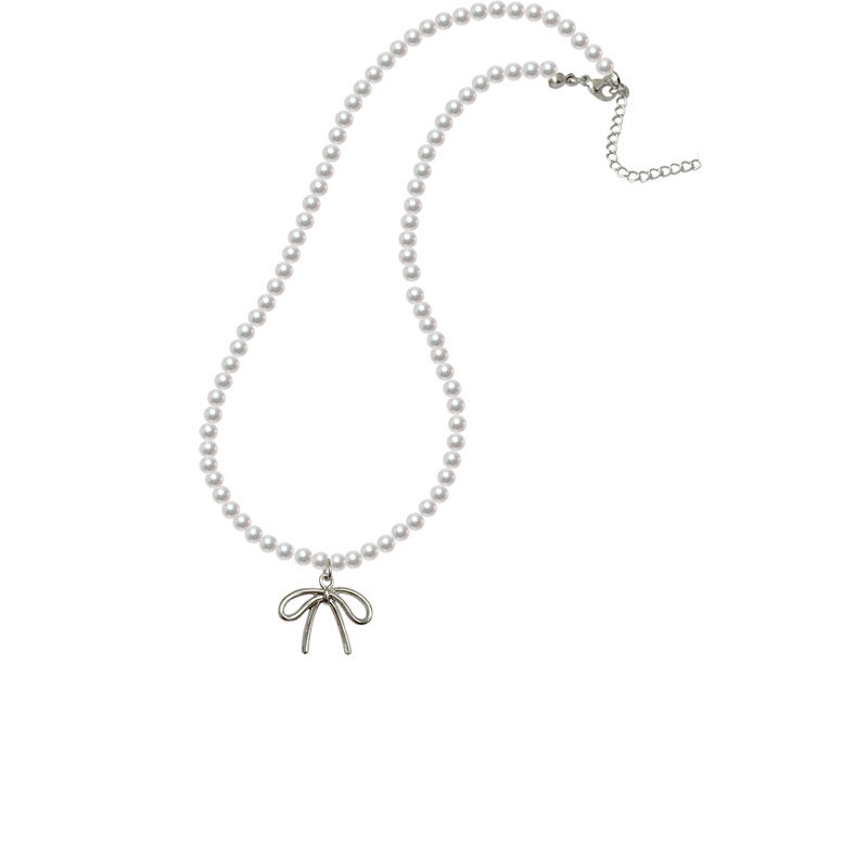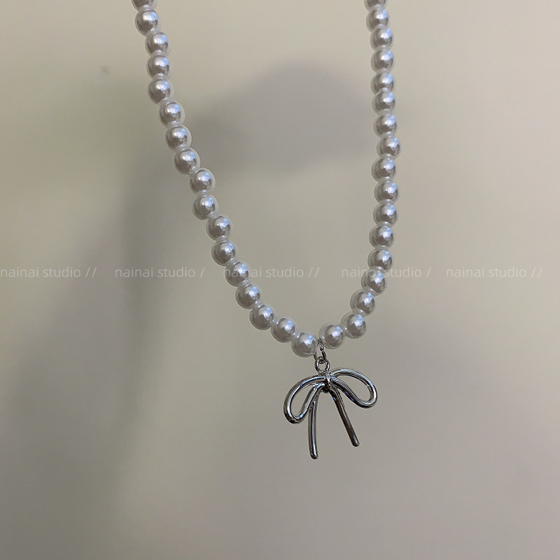 珍珠蝴蝶结项链~韩系小众高级感气质锁骨链轻奢2025新款爆款颈链