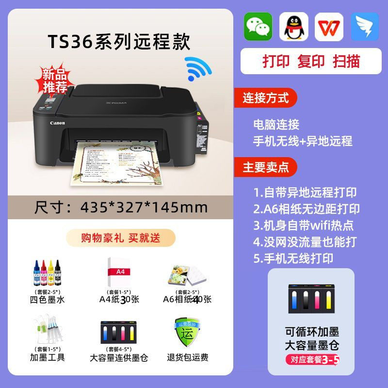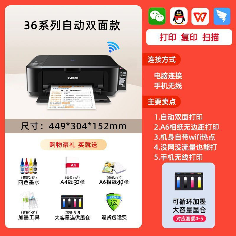 佳能3680彩色打印机家用小型复印扫描一体机手机无线照片办公墨仓
