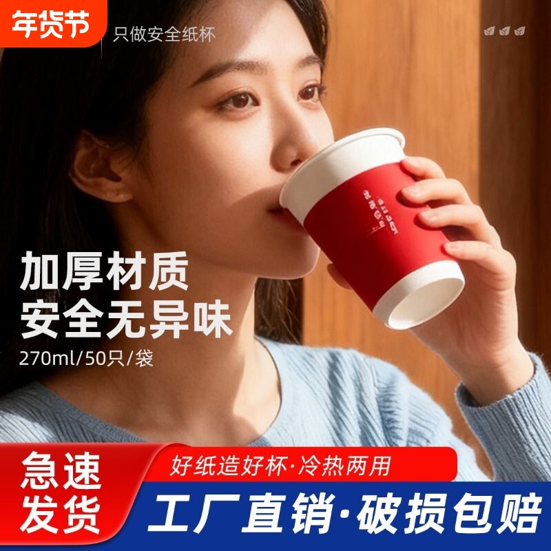 新年大航国风胭脂红纸杯家用喜庆过年一次性杯子加厚加硬防漏便携